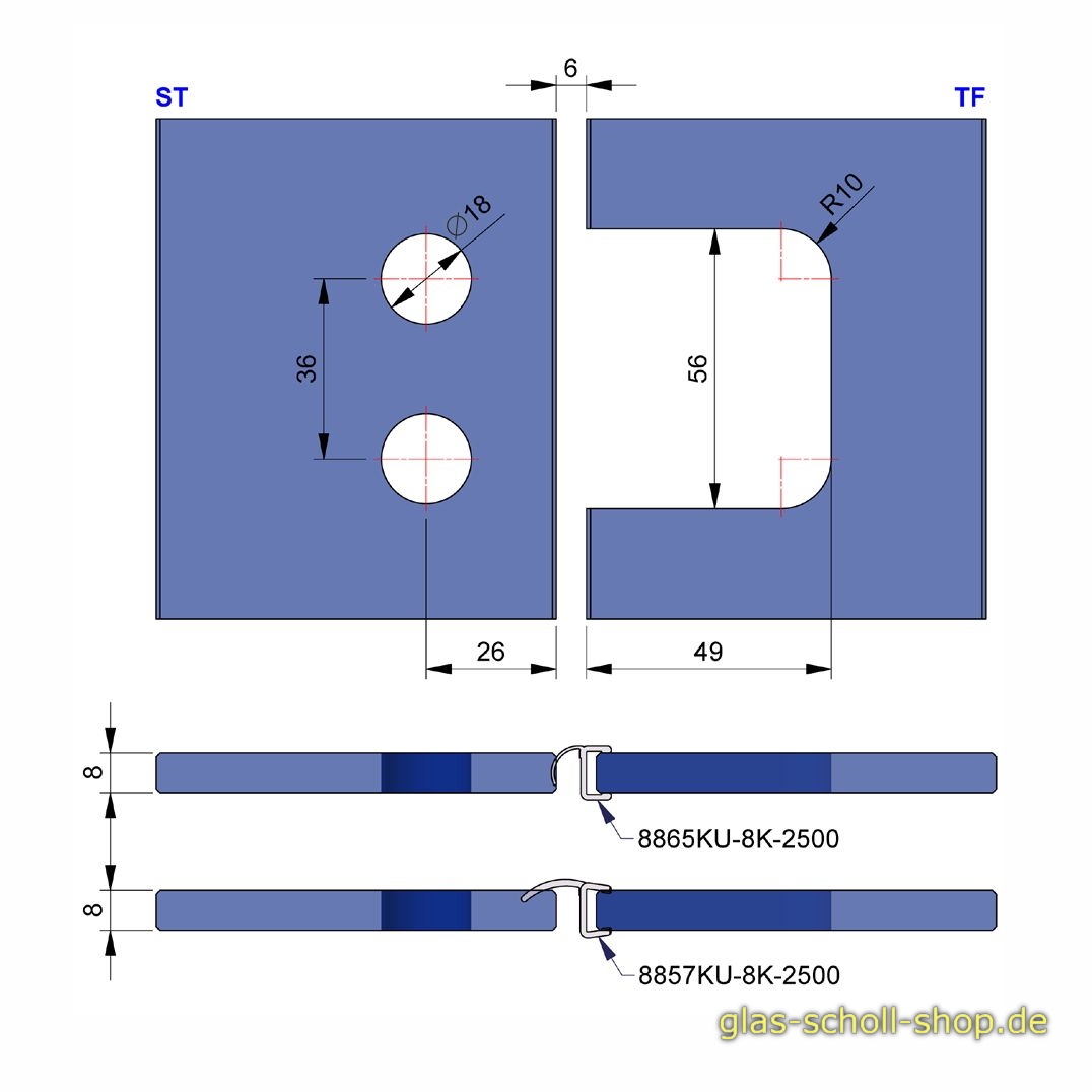 FlinterPro 180° Glas-Glas Duschtürband